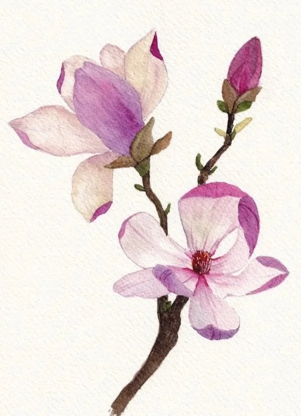 In this beginner-friendly workshop, we will explore how to paint elegant magnolia flowers using easy to follow watercolor techniques. Working from a pre-drawn design, participants will learn how to create subtle layers adding shadows, blending and softening colors.