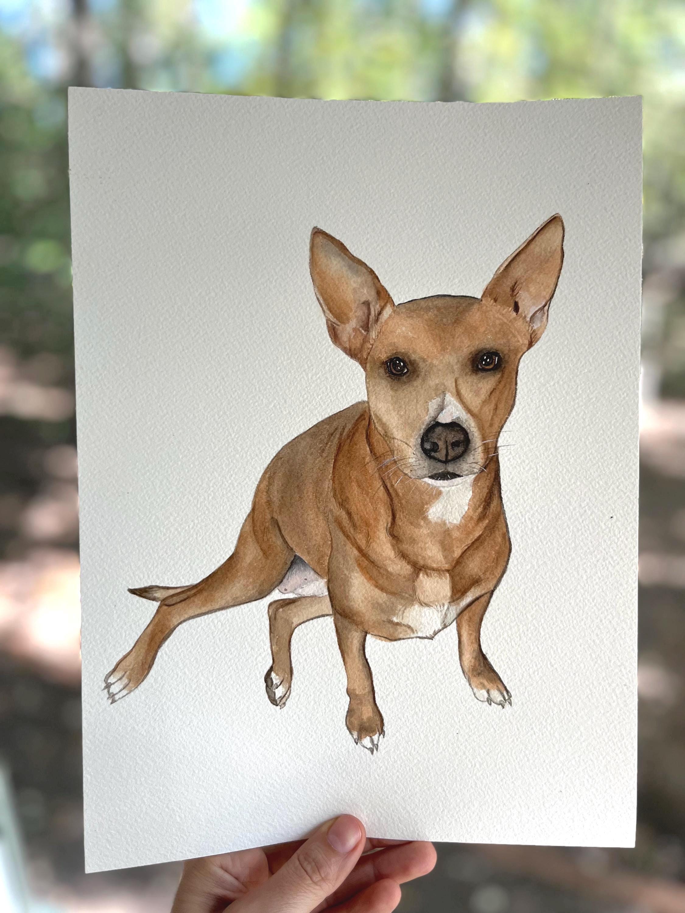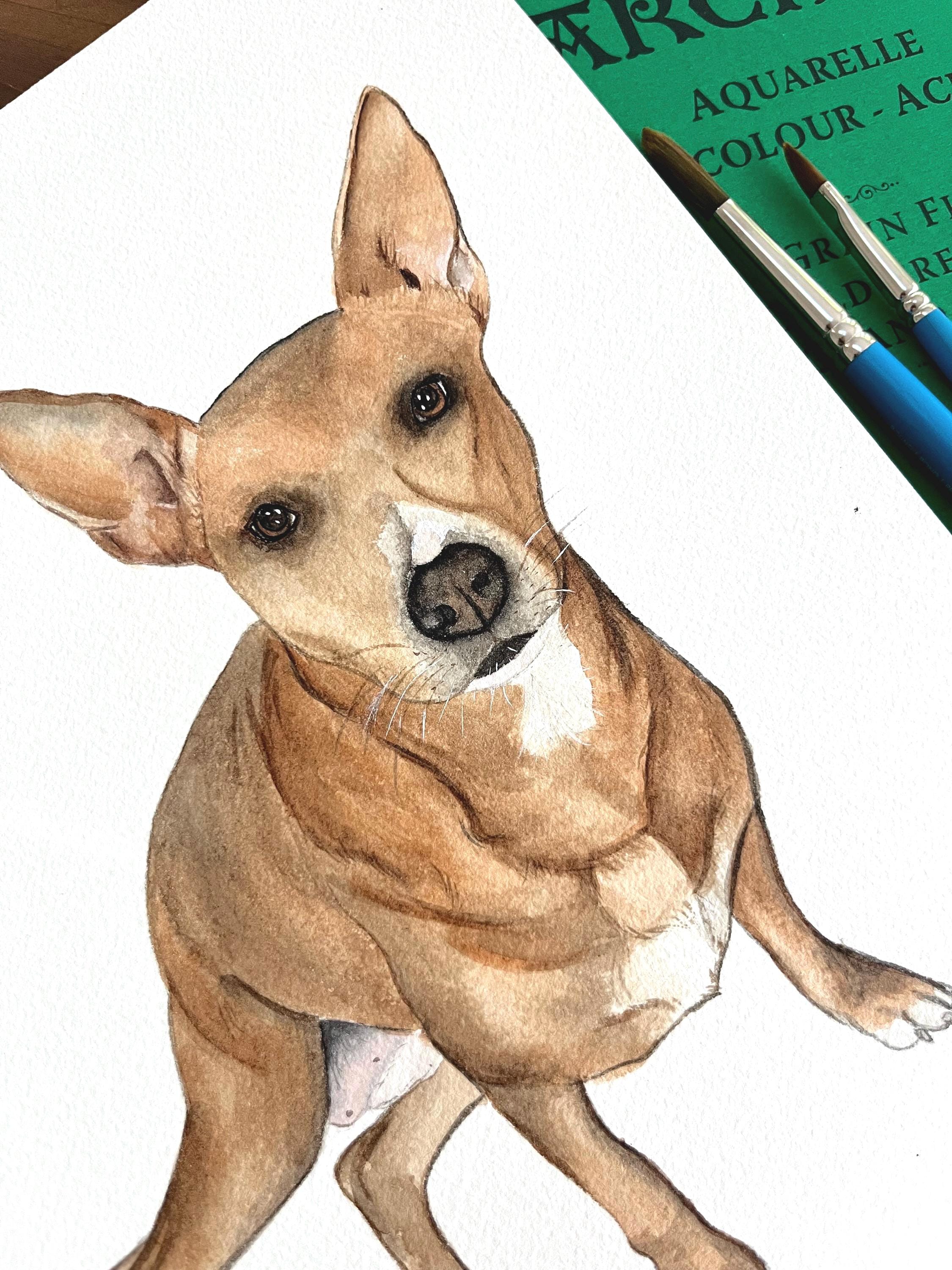 Each portrait is crafted using professional-grade watercolor paints on 100% cotton archival paper, ensuring vibrant colors and lasting quality. I work from your favorite photo to create a lifelike representation that honors your pet's essence.